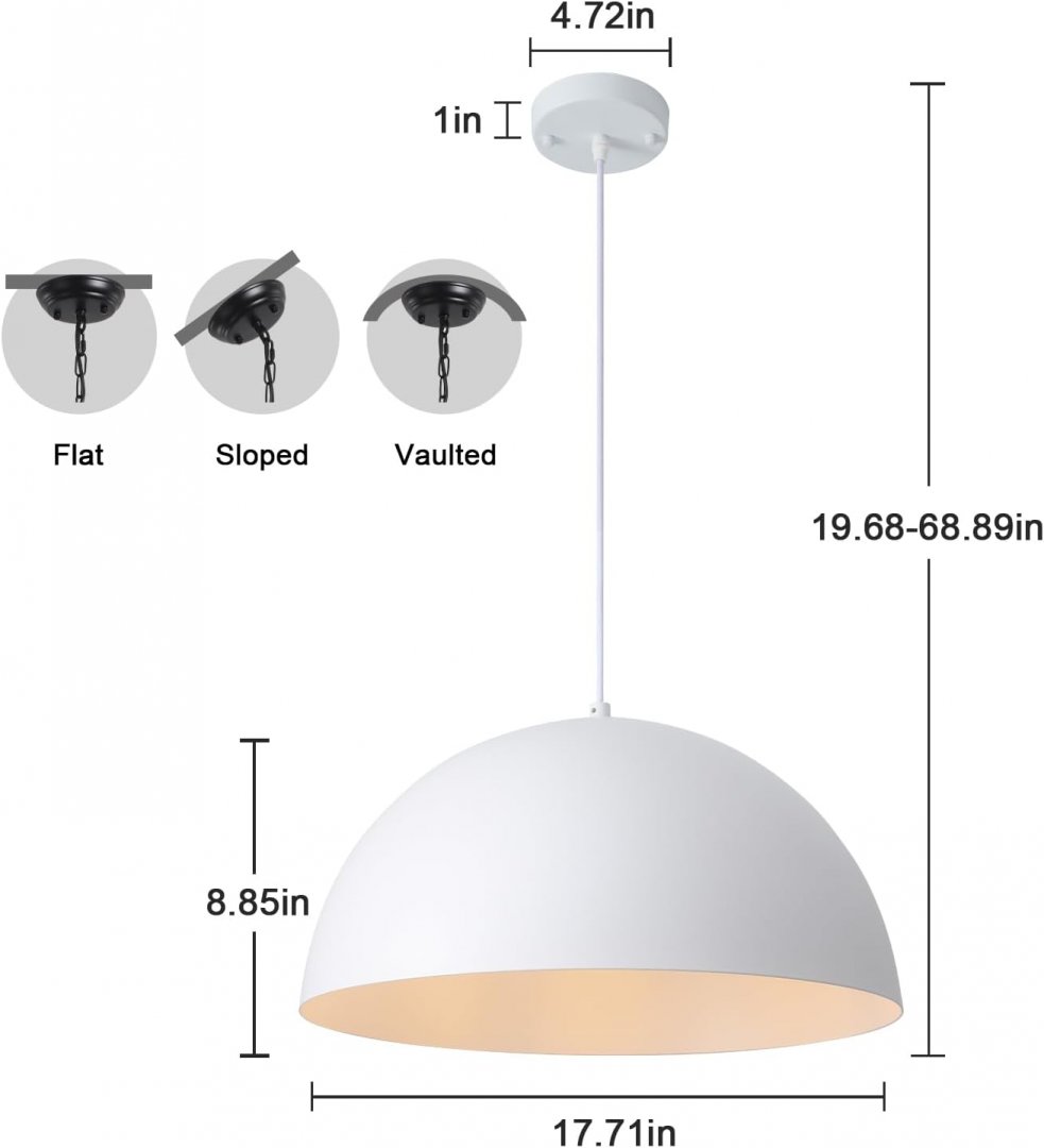 ashuaqi large dome pendant light - 18" - white - (model: d0196-450-w)