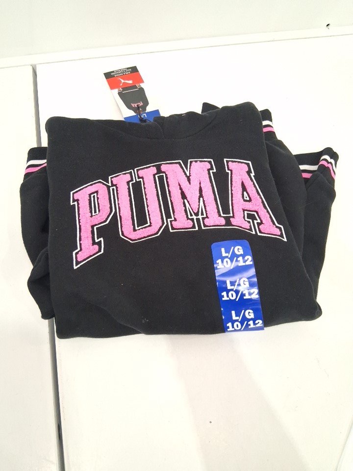 KIDS PUMA logo sweater pull-over hoodie - large - black/pink (style: 3513000)
