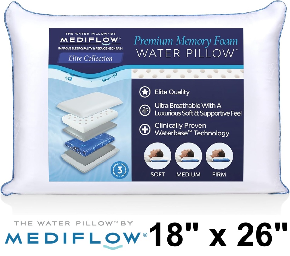 Mediflow Elite Collection Premium Memory foam Water Pillow - 18" x 26" - white