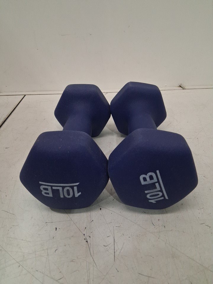 2PK AMAZON BASICS neoprene hexagon free-weight workout dumbbells - 10lbs each/20lbs total - navy blue