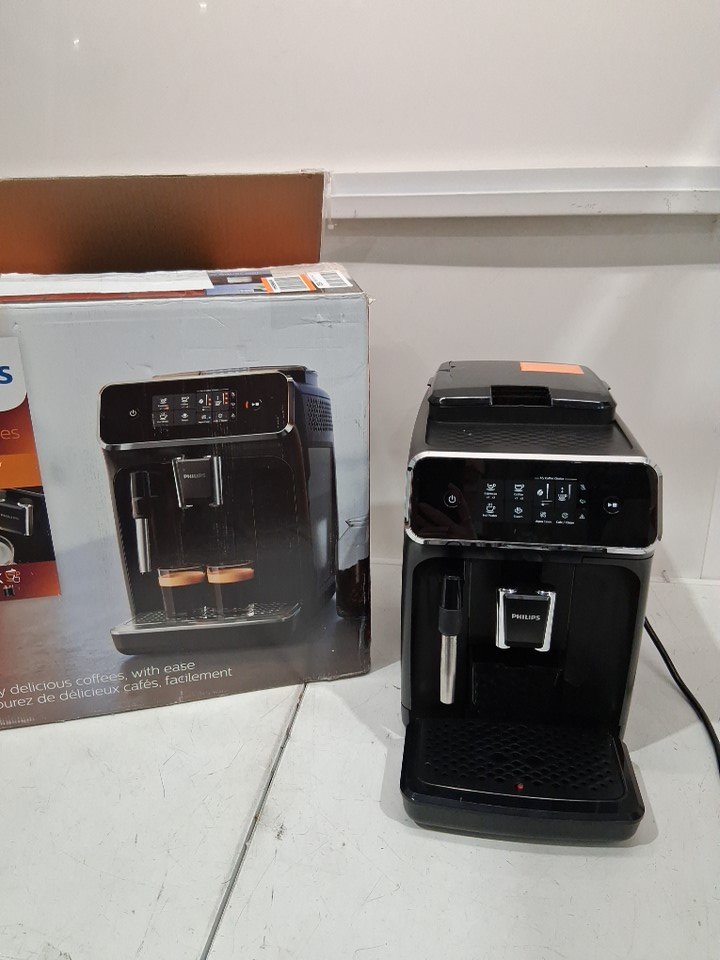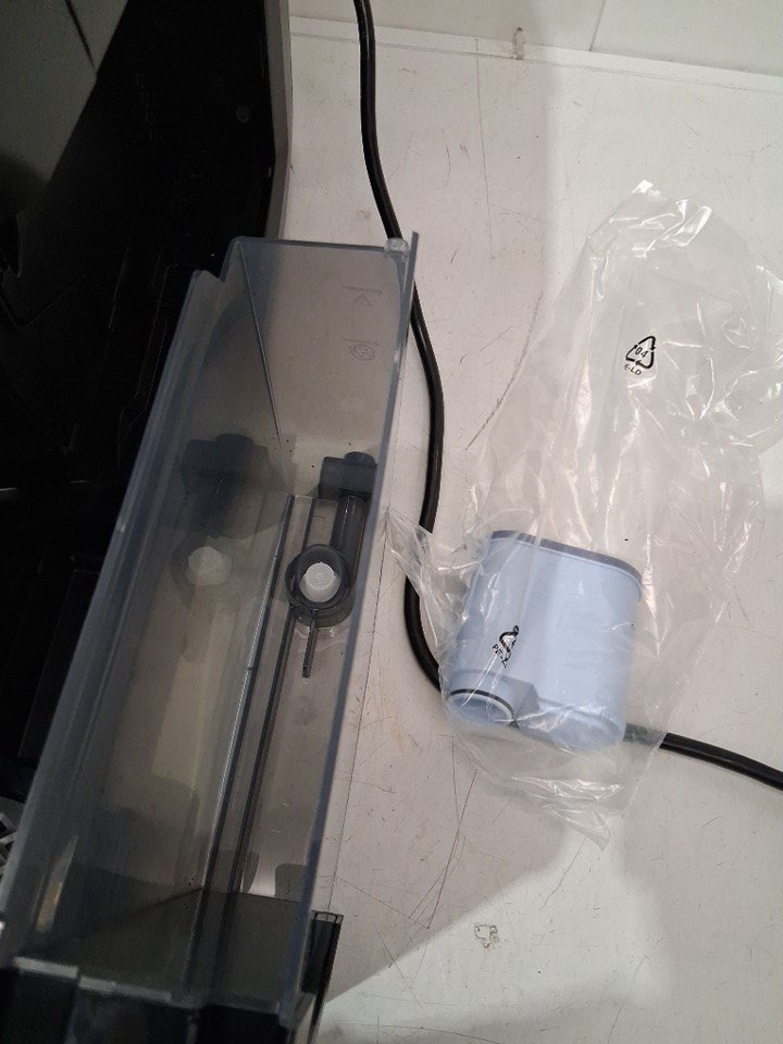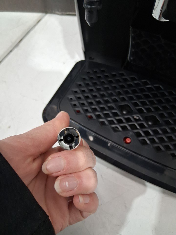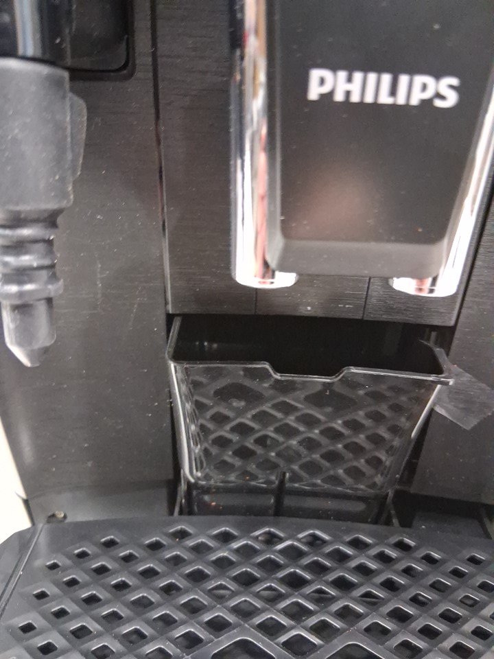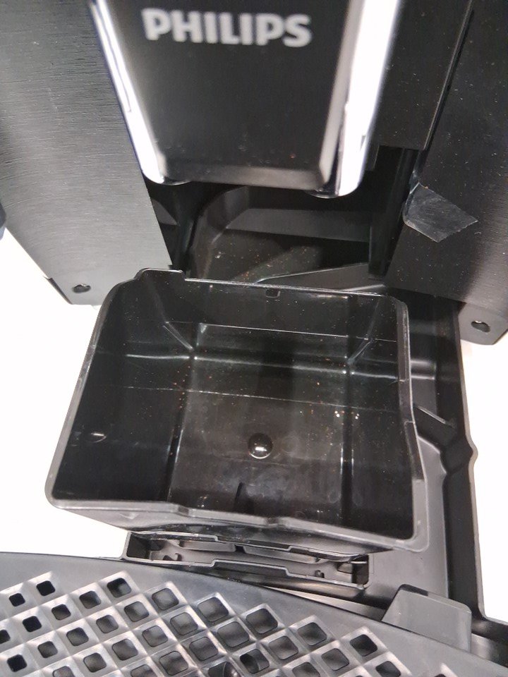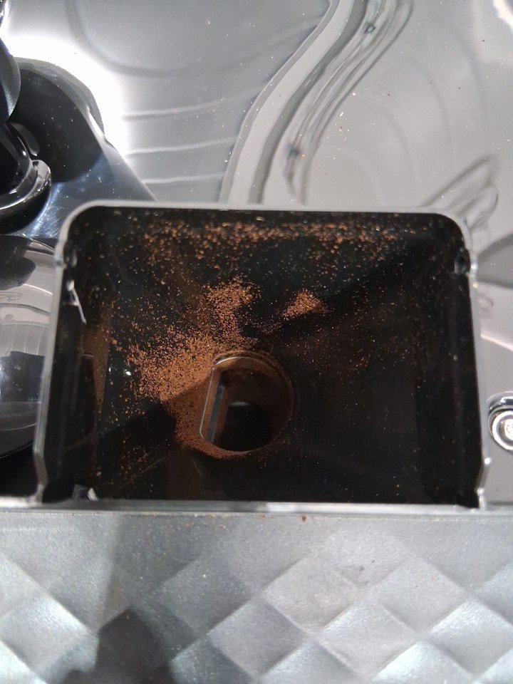 Has some ground inside the machine and the top cover is cracked and missing the area that covers the grounds.