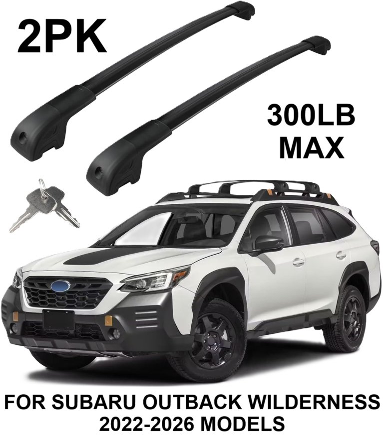 Koarigo Adjustable Aluminum Heavy Duty Roof Rack Cross Bars with Anti-Theft Lock - For Subaru Outback Wilderness 2022-2026 Models - 300 LBS Max - Black (Model: KRB)