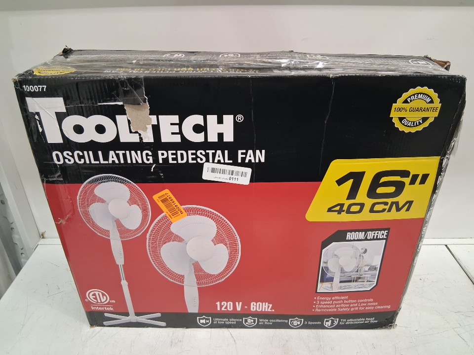 Tooltech 3-Speed oscillating pedestal fan - 16" - white - (model: 100077)
