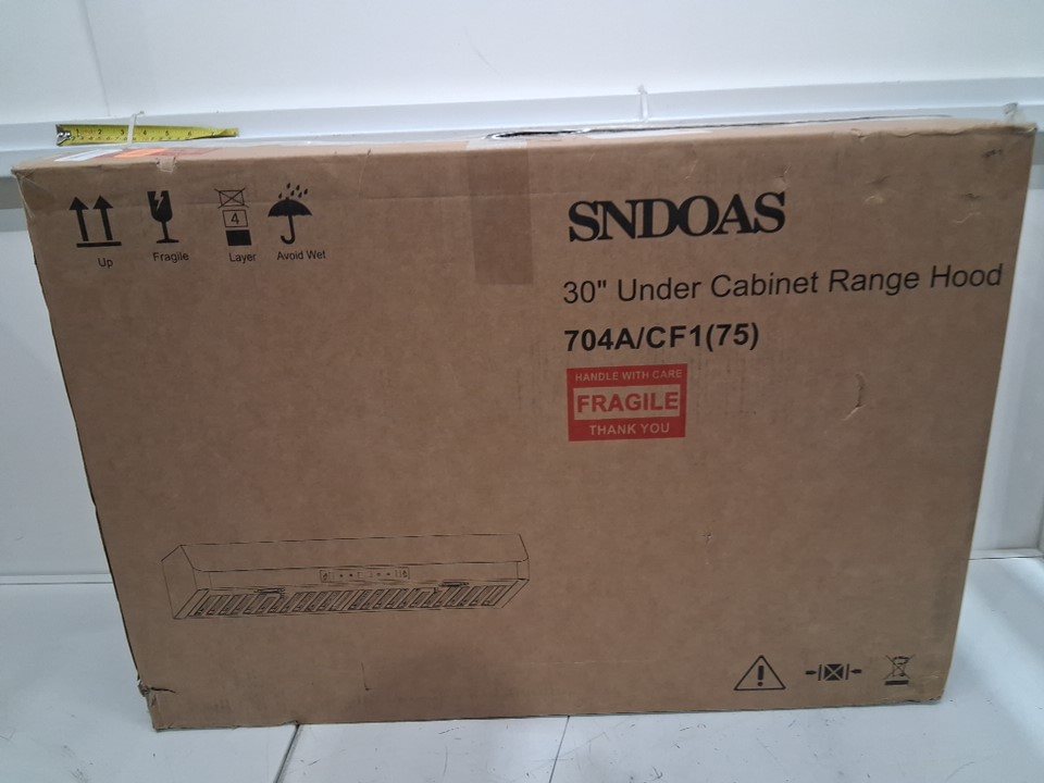 SNDOAS UNDER CABINET KITCHEN VENT RANGE HOOD WITH TOUCH CONTROL AND LED LIGHTS - 30" / 3 WAY VENTING DUCTLESS HOOD - 700CFM - 30" - STAINLESS STEEL (MODEL: 704A/CF1(75))