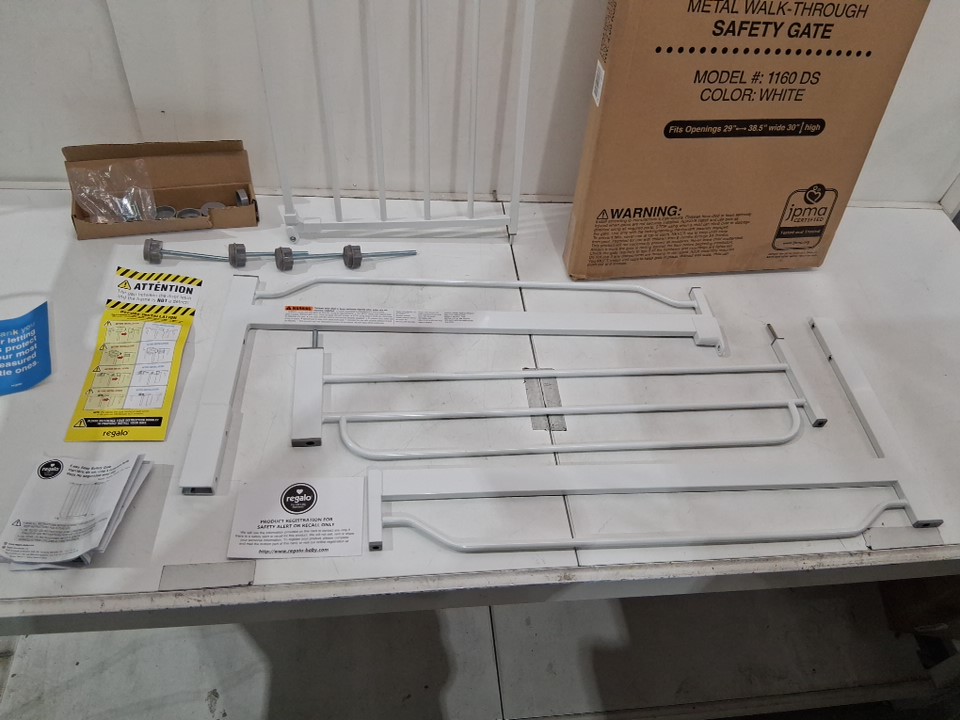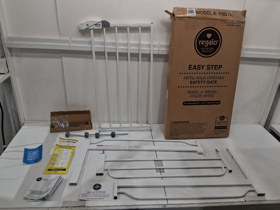 REGALO EASY-STEP METAL WALK-THROUGH SAFETY GATE - 29''-38.5" x 30" - WHITE (MODEL: 1160DS)