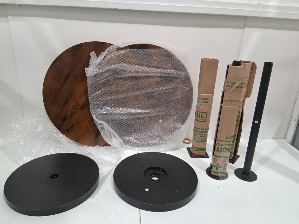 2pk Small Round Side Table Drink Table with wooden base - 25" - black/rustic brown