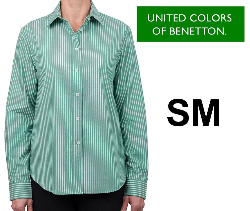Men's Colors of Benetton Striped button down shirt - small - Green/white (Style: 1873416)