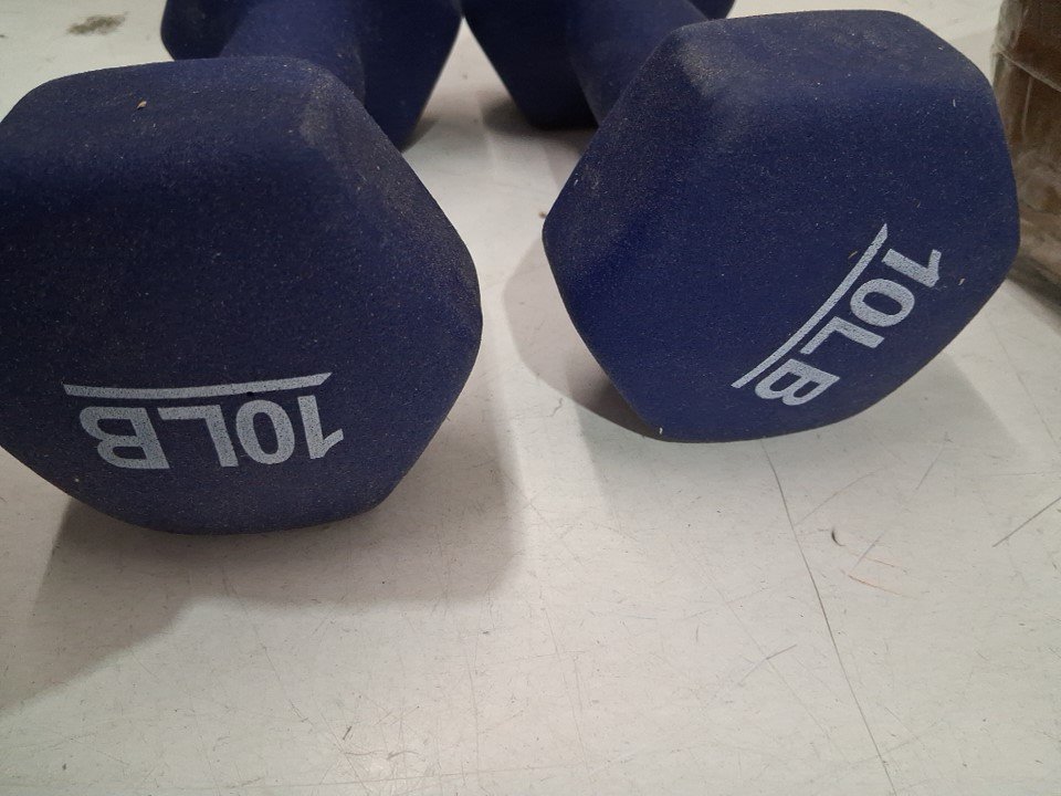 2PK AMAZON BASICS neoprene hexagon free-weight workout dumbbells - 10lbs each/20lbs total - navy blue