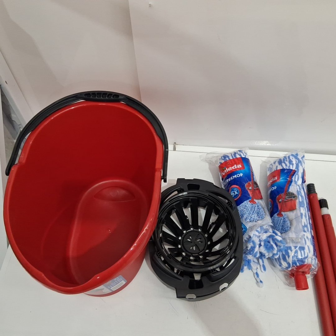 VILEDA SUPERMOP SYSTEM WITH EXTRA MOP HEAD REFILL - RED (MODEL: 167683)