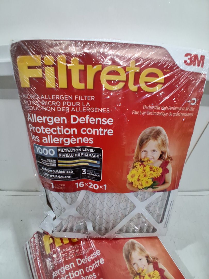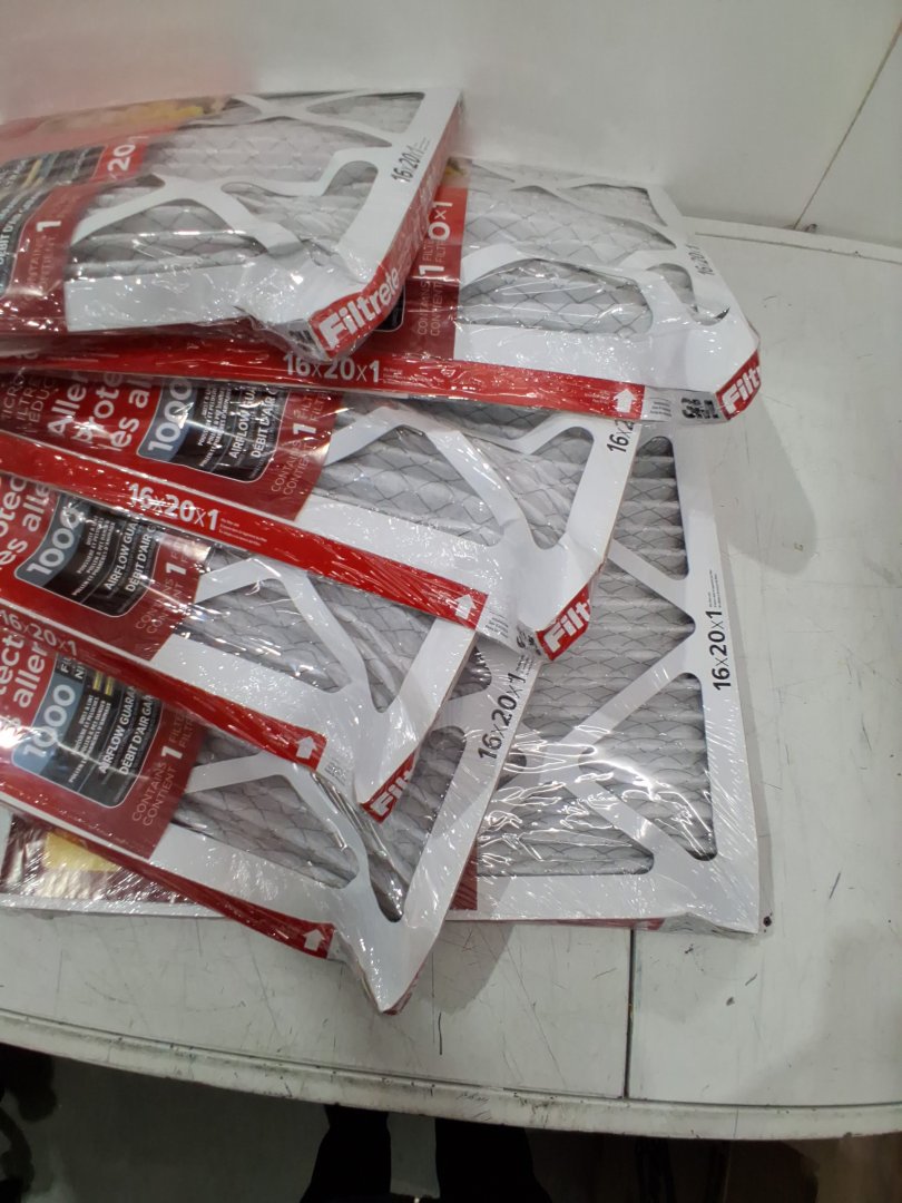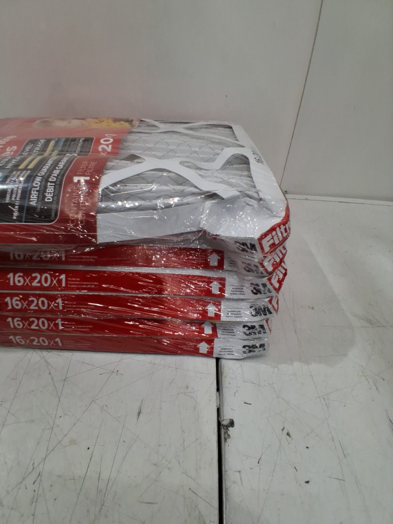 One side of the box is crushed which resulted in all 6 filters being bent in the corner, can be straighten out - see photos
