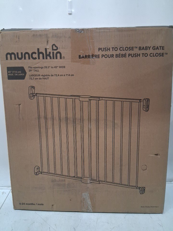MUNCHKIN PUSH TO CLOSE EXTENDING SAFETY GATE - 29" x 28.5"-45" - BLACK - (MODEL: MK0001REV4)