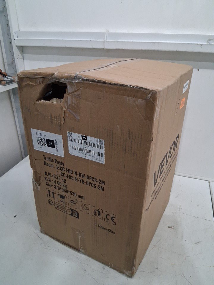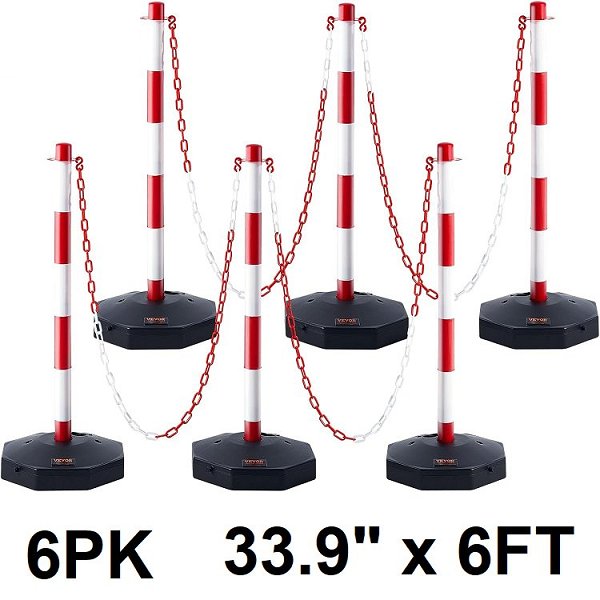 6pk traffic posts - 33.9" x 11.2" posts - (6) 6ft chain - red/white (model: cc-f03-n-rw-6pcs-2m)