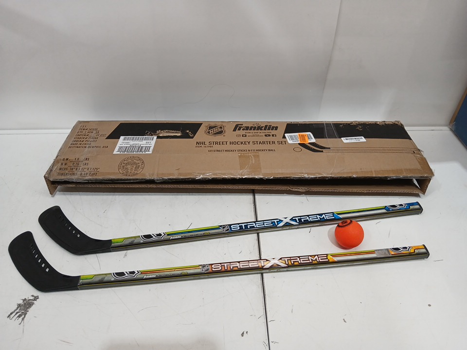 3pc kids franklin sports nhl certified street xtreme street hockey set with 2 mini sticks and one ball - 3ft (model: 14198X)