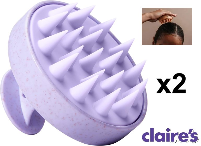 2 claire's shower scalp brushes - purple