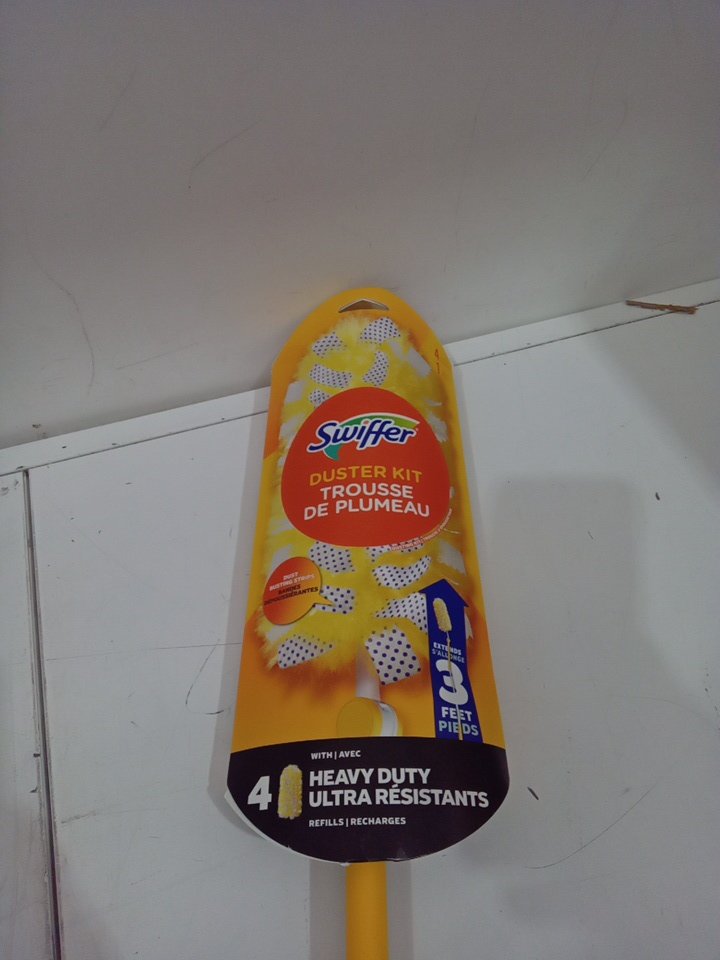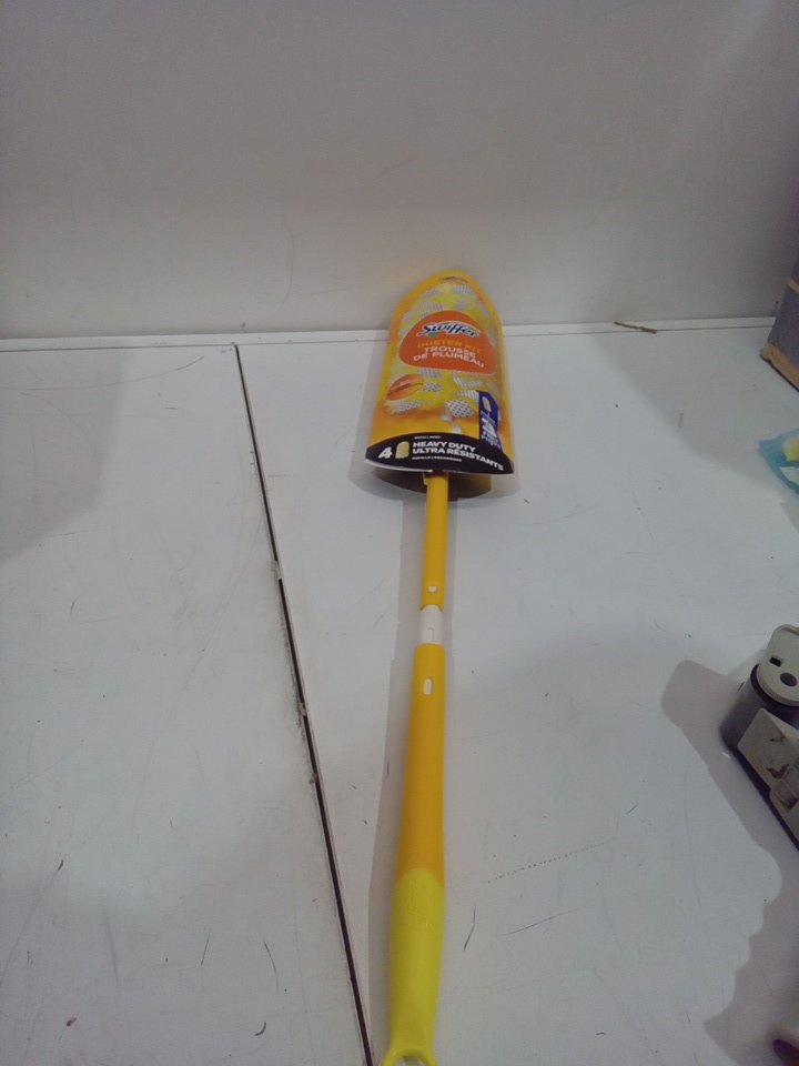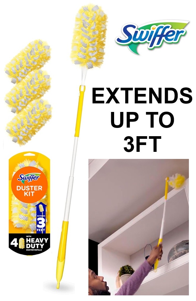 SWIFFER DUSTERS HEAVY DUTY 3FT EXTENDABLE HANDLE STARTER KIT FOR MULTI SURFACE CLEANING with 4PK of DUSTERS - yellow