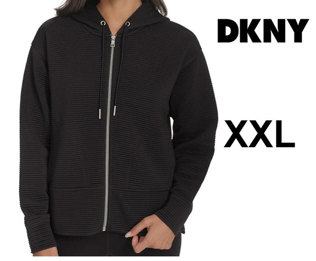 women's DKNY Ribbed Long Sleeve Hooded Sweatshirt - XXl - black (Style: 1956159)