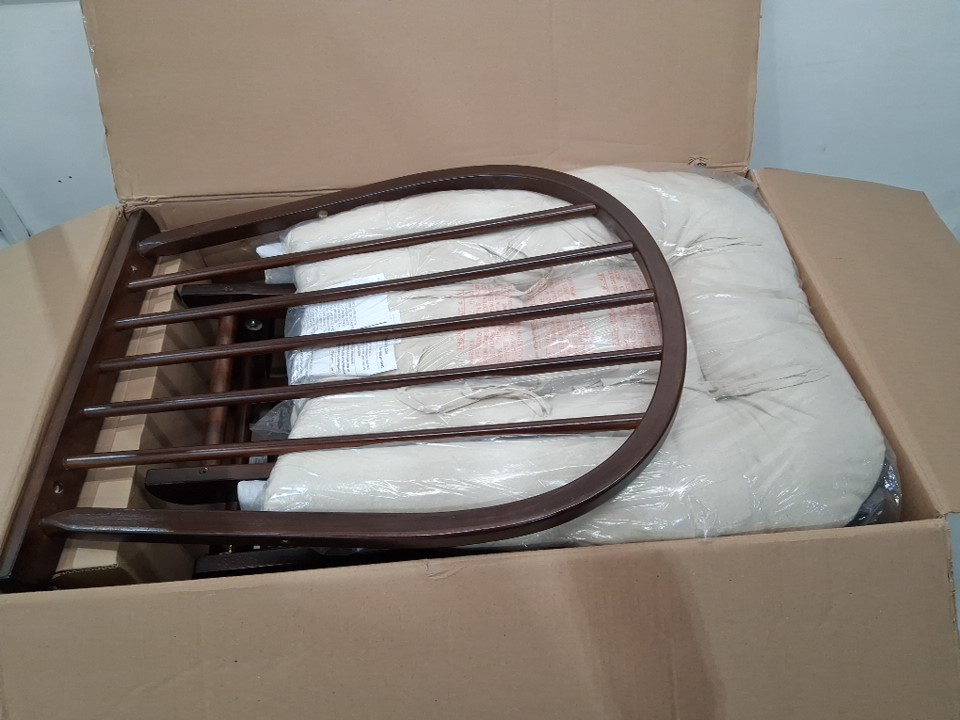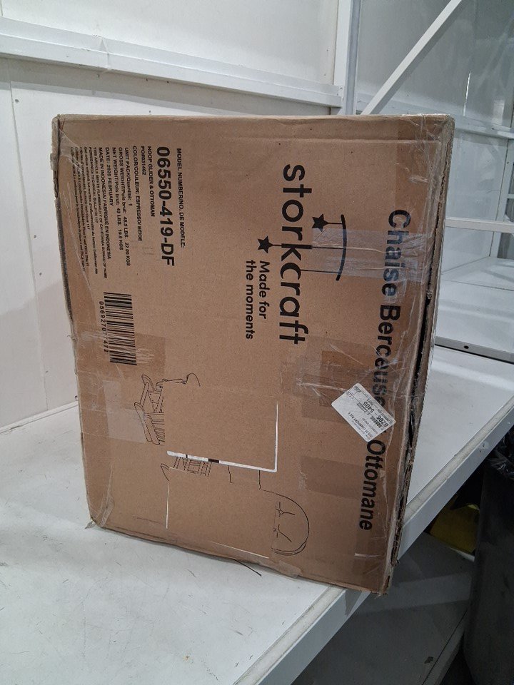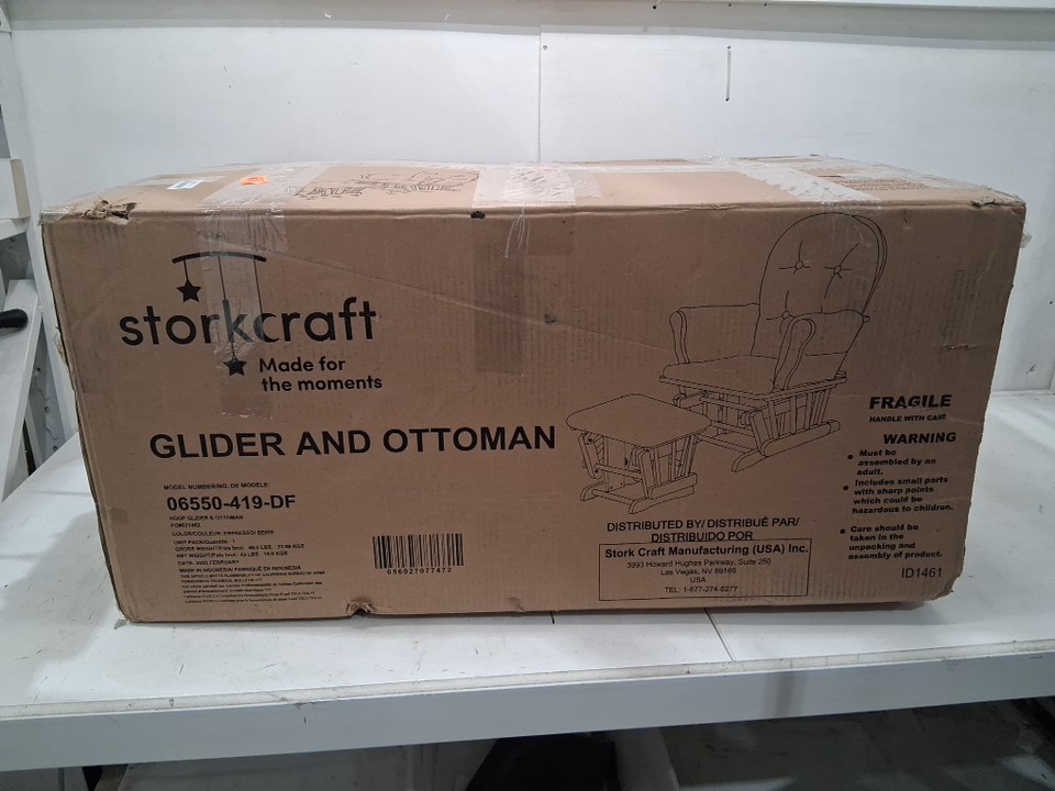 STORKCRAFT HOOP GLIDER AND OTTOMAN SET - ESPRESsO frame WITH BEIGE CUSHIONS (MODEL: 06550-419-DF)