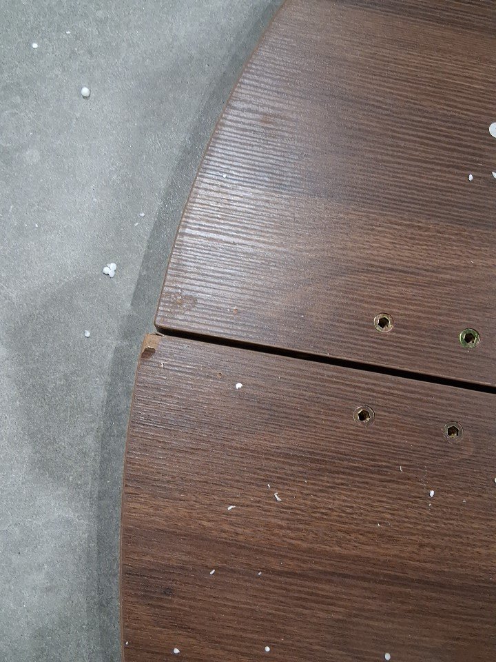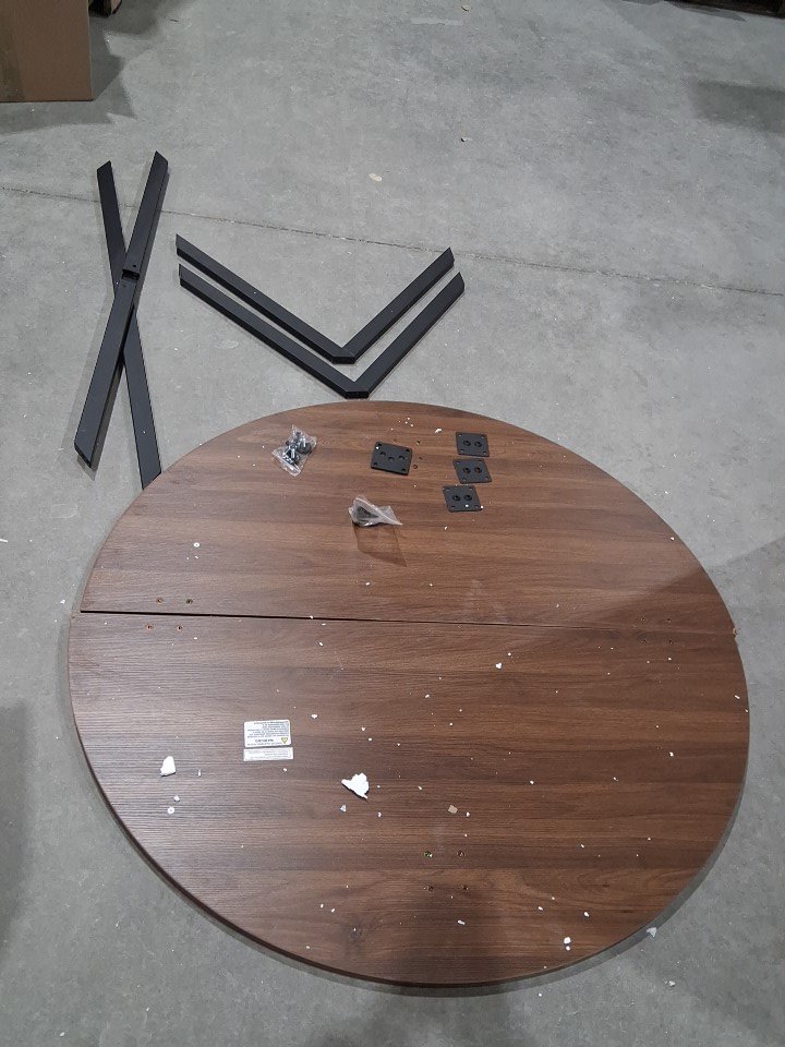Please note that the item is missing one bracket for the table - also there is some chips in the corners of table - please see photos