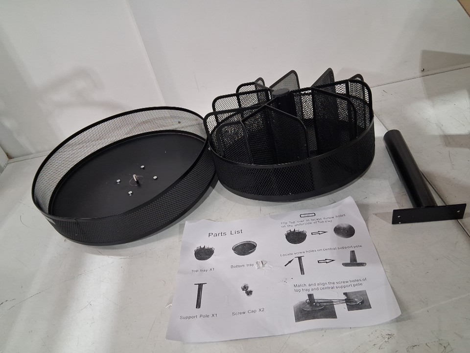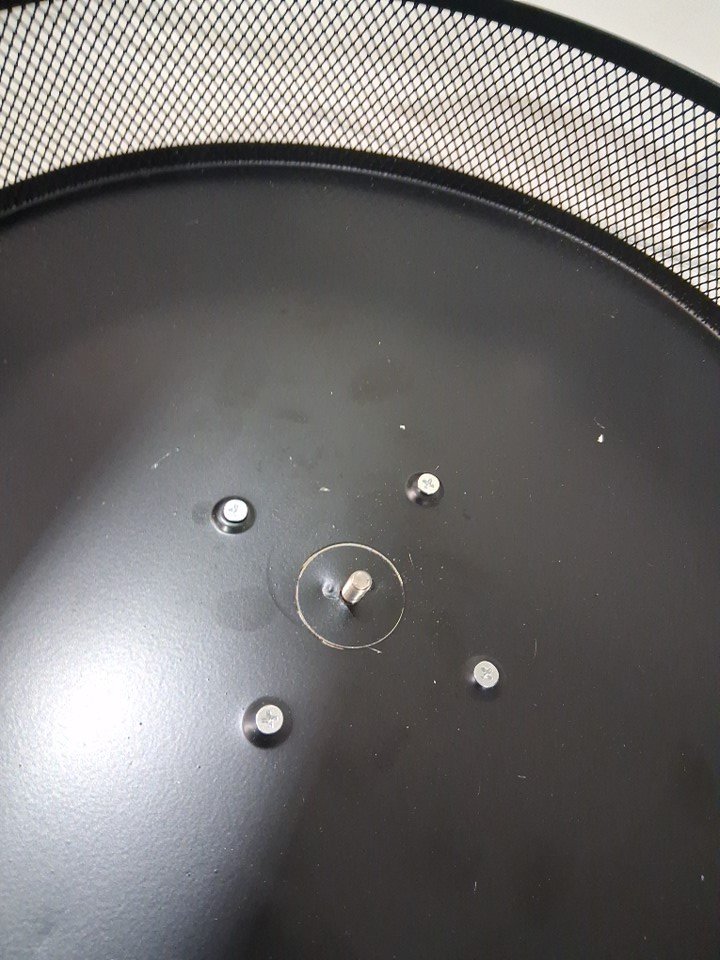 The bottom circle is dented and there are some marks on lazy Susan, and not sure if the two screw caps are there, see photos.