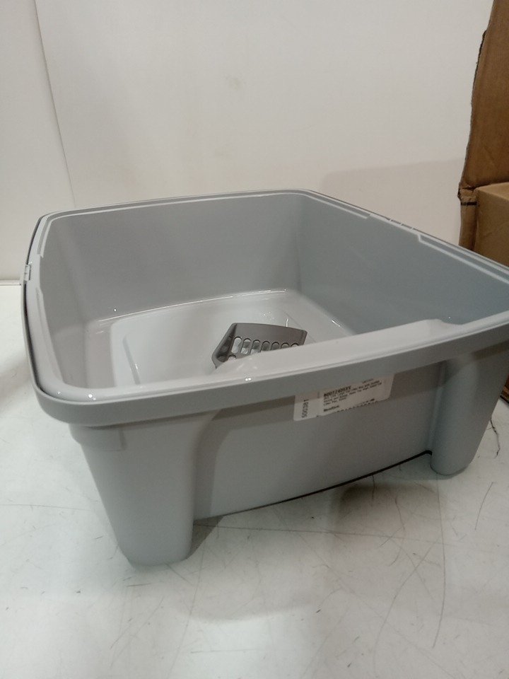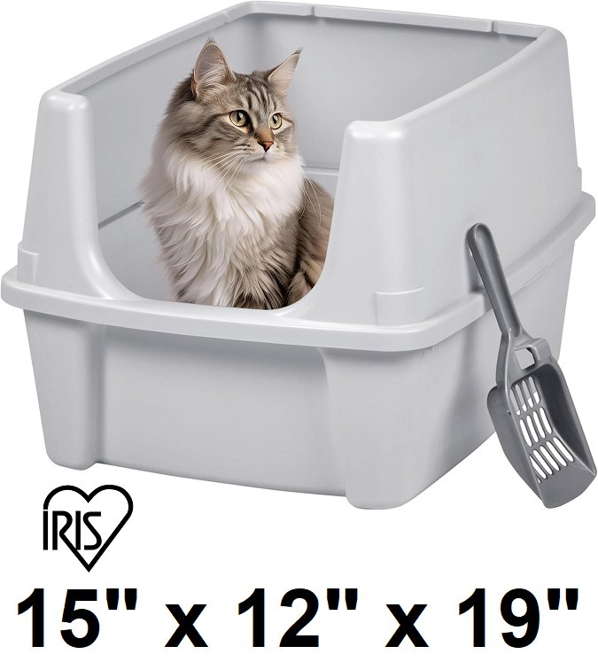 IRIS Open Top Cat Litter Box Kit with Shield and scoop - 15" x 12" x 19" - grey
