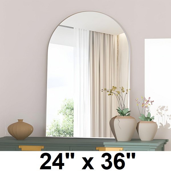 neuweaby wall mounted arched mirr with metal frame - 24" x 36" - silver