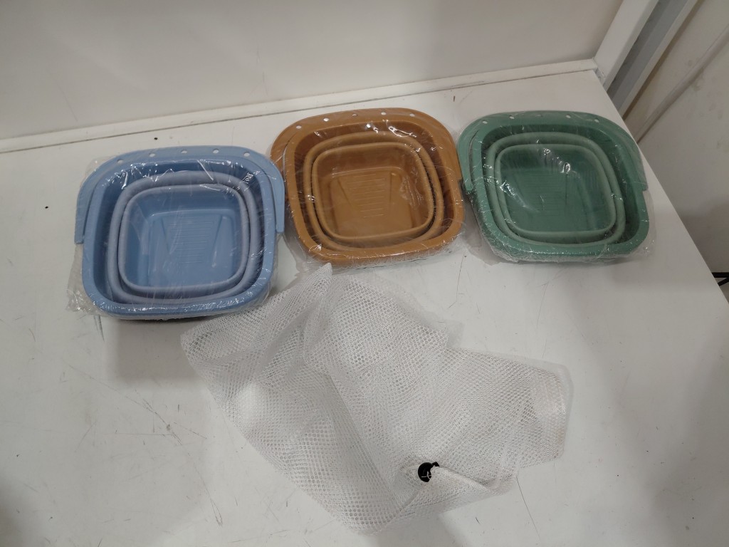 3pk foldable collapsible multi-purpose buckets - 2.5l - blue/green/brown