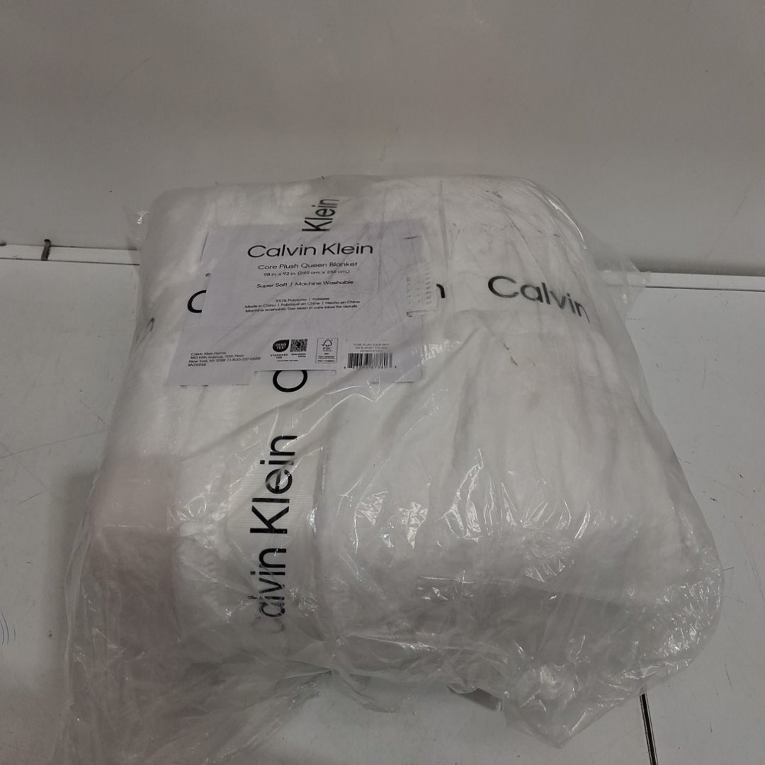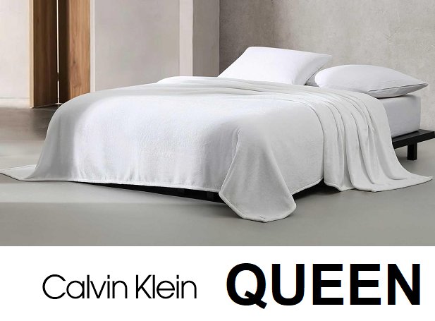 Calvin Klein Soft Plush Medium Weight Bed Blanket - queen - white