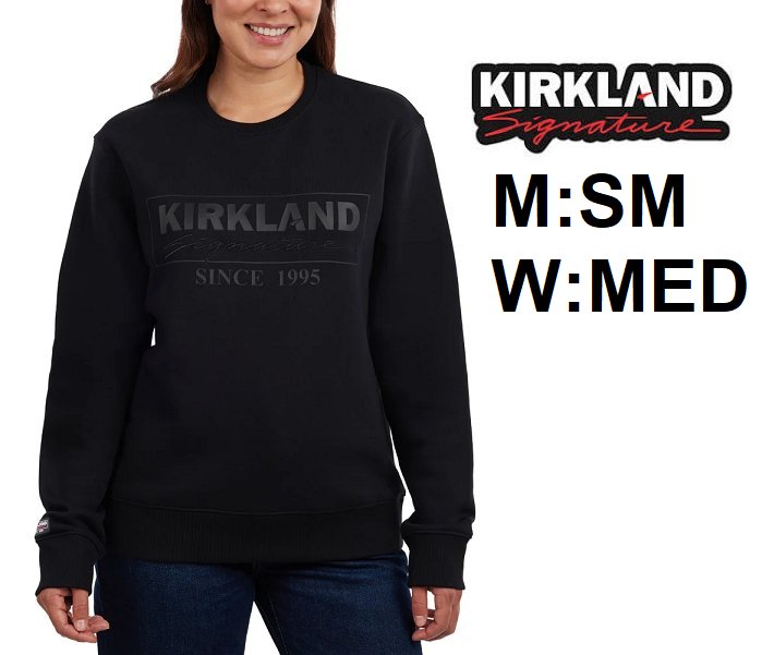 adult Unisex Kirkland Signature Logo pullover Crewneck Sweatshirt - men's small/women's Medium - black - (style: 7771760 )