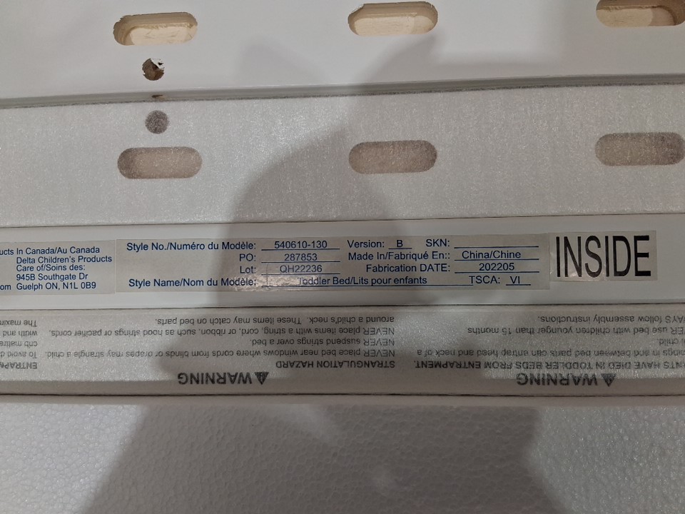 DELTA CHILDREN FANCY greenguard gold certified TODDLER BED - 55.25" x 30" x 26.5" - bianca WHITE (MODEL: 540610-130)