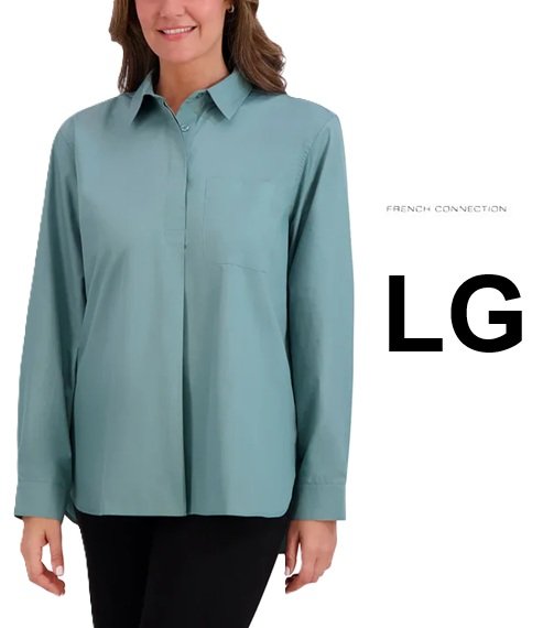 Women's FRENCH CONNECTION Henley Blouse - LARGE - large - teal (style : 1869647)