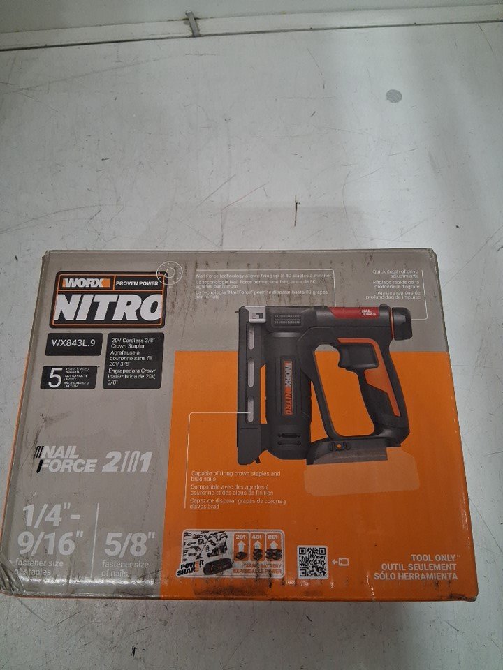 Worx Nitro Cordless 3/8" Crown Stapler with Air Impact Technology 20V Power Share - BLACK - (MODEL: WX843L.9) (Tool Only)