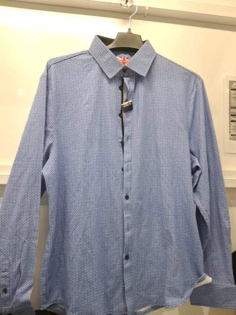 MENS modern english long sleeve super soft dress shirt - large - blue/white (style: 1818907)