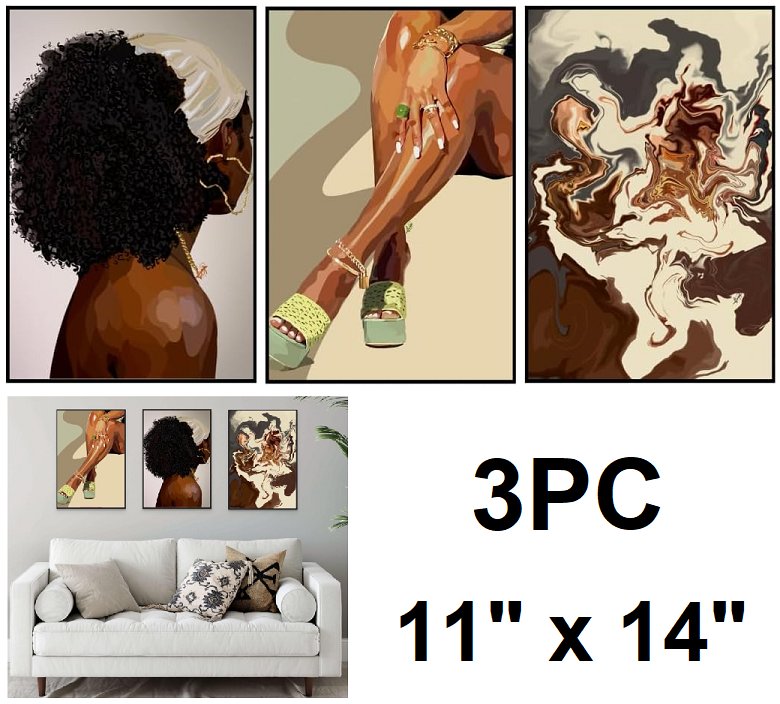 3pc smard unframed wall-art - 11"x14" - modern bohemian woman