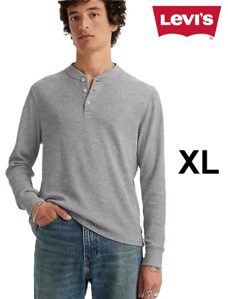 MENS LEVIS Long Sleeve Thermal Henley - extra-large- grey