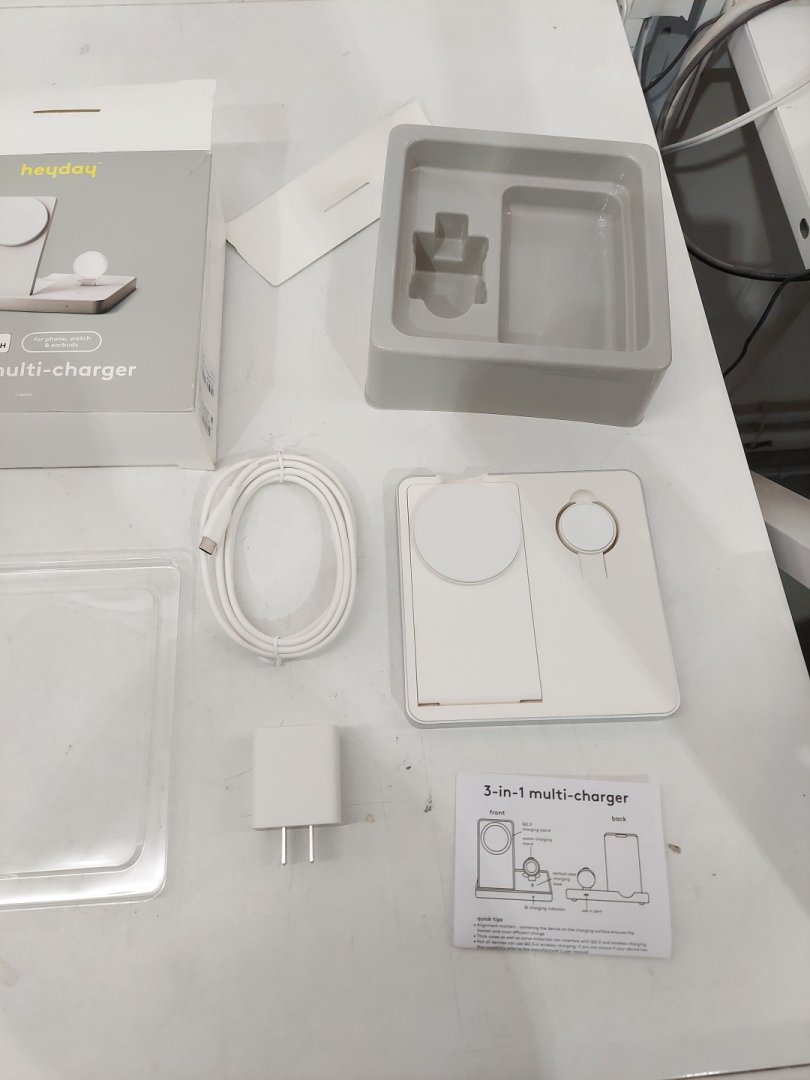 heyday 3-in-1 multi-charger stand made for APPLE Watch, earbuds & iphone - white (model: qic37m)