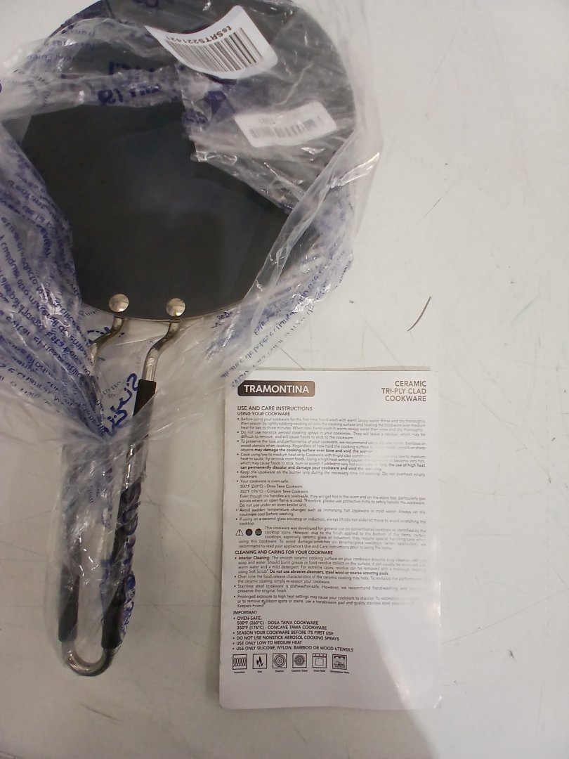 Tramontina utsava tri-ply clad stainless ceramic-coated concave chapati tawa non-stick tava pan - 10.5" (model: 98051/010DS)