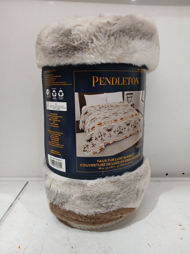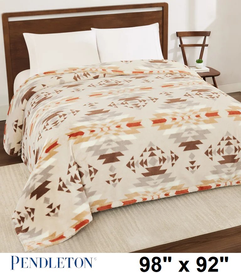 Pendleton faux fur luxe throw blanket - 98"x92" - southwest print in beige