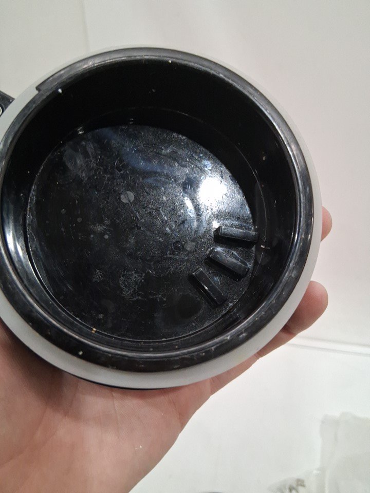 was tested for power item is missing white brush and there is some water marks on the underside of the lid and some in the mase as well (see photos)