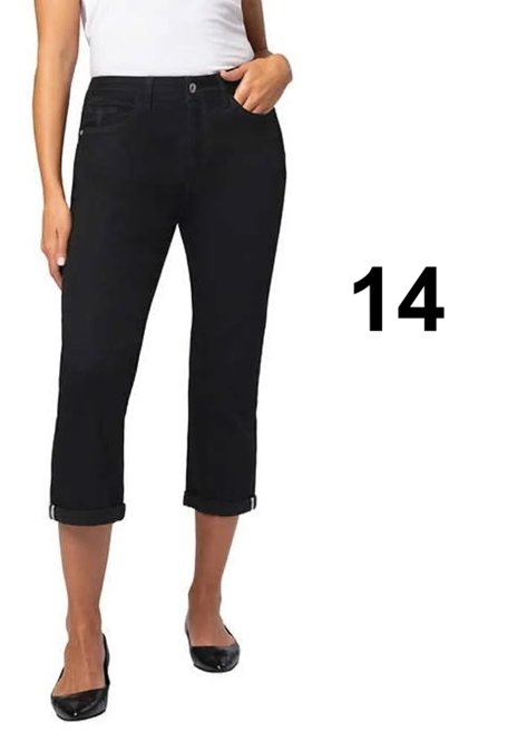 WOMEN'S SANTANA Tummy Control DENIM Capri PANTS - SIZE 14 - Black (STYLE: 2351004)