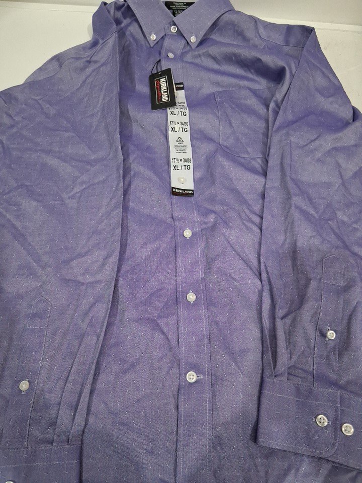 Men's Kirkland signature wrinkle free stain resistant dress shirt - extra LARGE - 17.5 x 34/35 - PURPLE - (Style: 3918210)