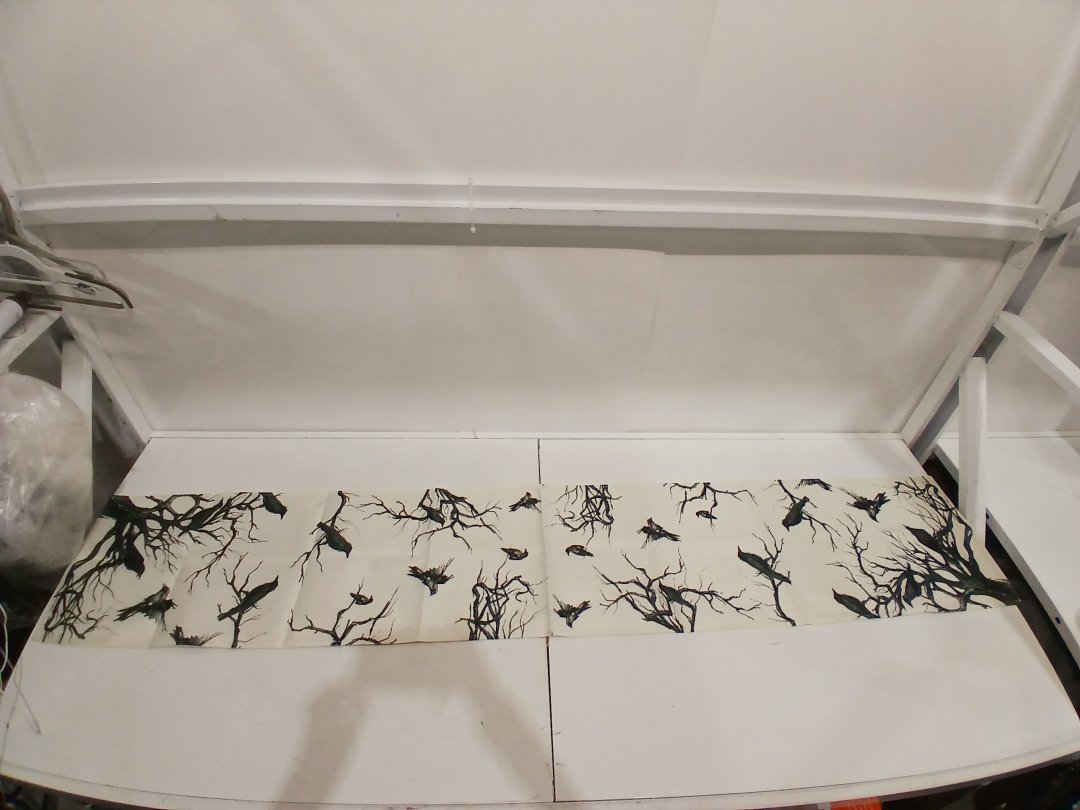 Artoid Mode Silhouette Tree Crows Halloween Table Runner - beige/black