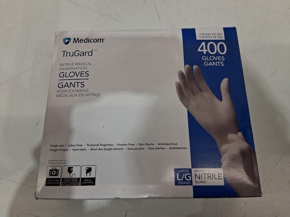 400pk medicom trugard nitrile medical examination gloves - large - white