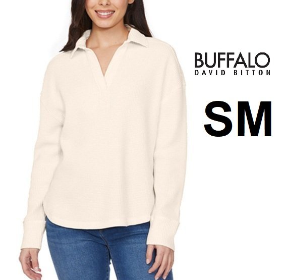 women's Buffalo david vitton Waffle V-Neck Collar Top - small- cream (model: 1913890)