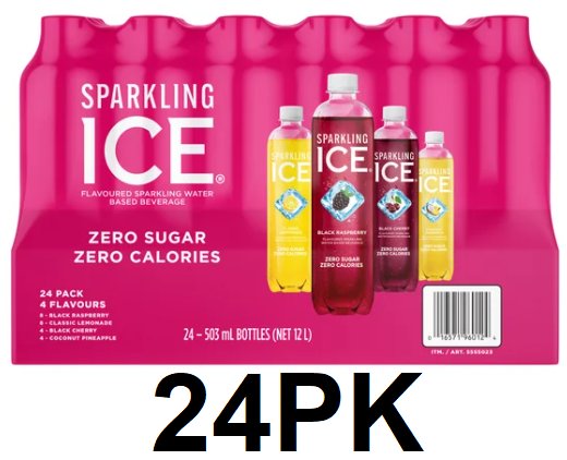 24PK SPARKLING ICE Flavoured Water Beverage Variety Pack - black raspberry/ black cherry/ classic lemonade