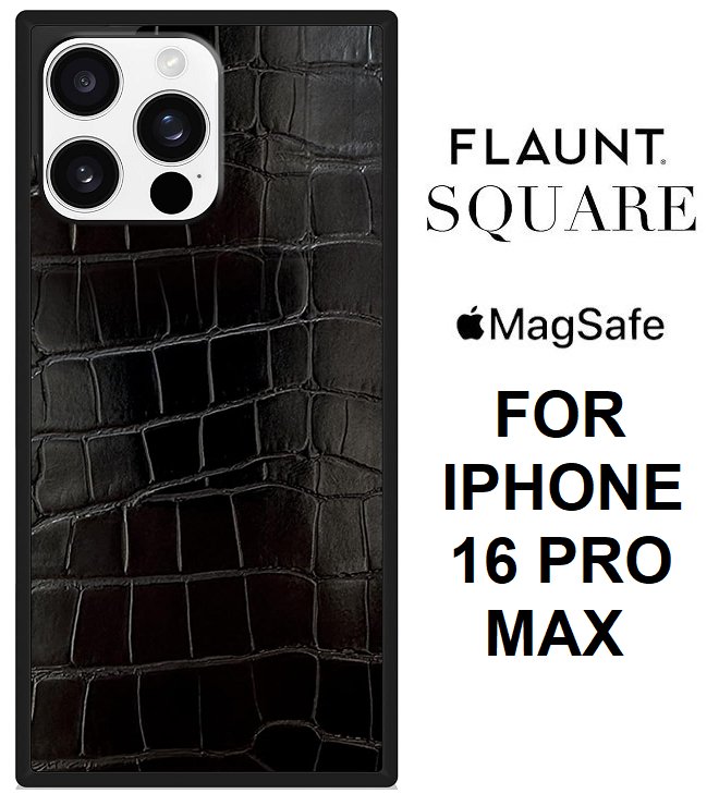 Flaunt Square MagSafe Faux Leather Case for iPhone 16 Pro Max - Black Crocodile