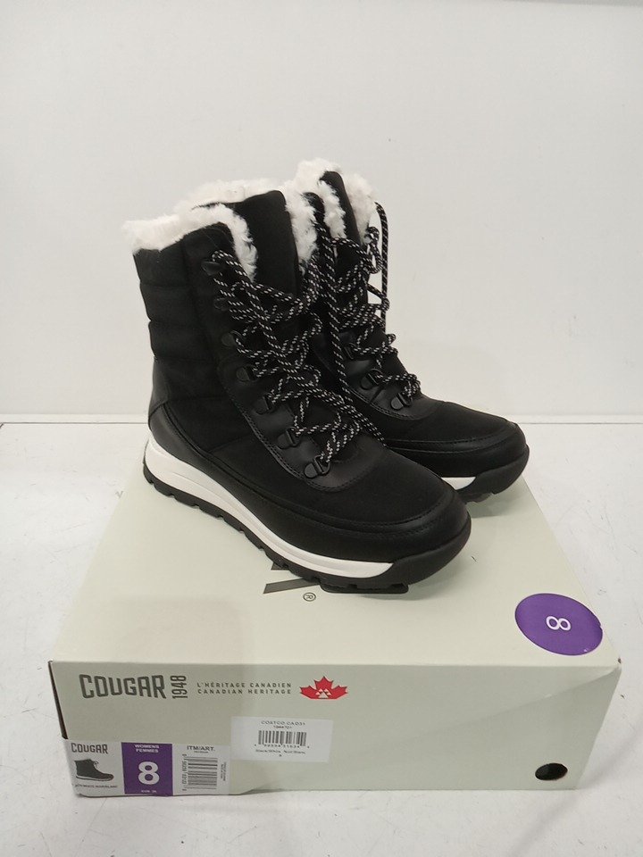 women's cougar waterproof winter boots - size 8 - black/white (style: 1919334)