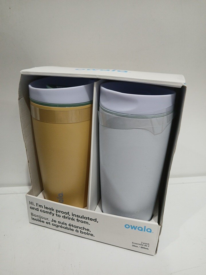 2PK Owala SmoothSip Slider bottles - 20oz Capacity - yellow/blue (model: 2429409)