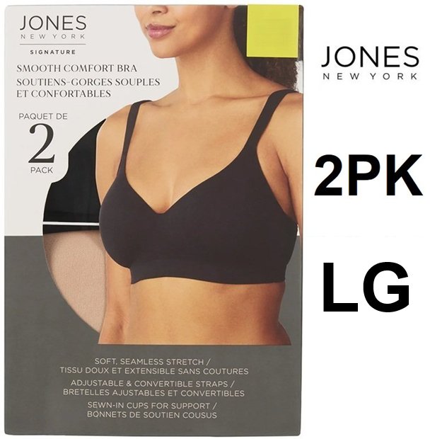 2pk womens jones new york smooth comfort bra - large - black / taupe (style: 2969312)