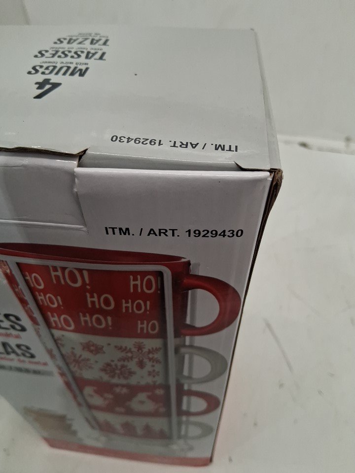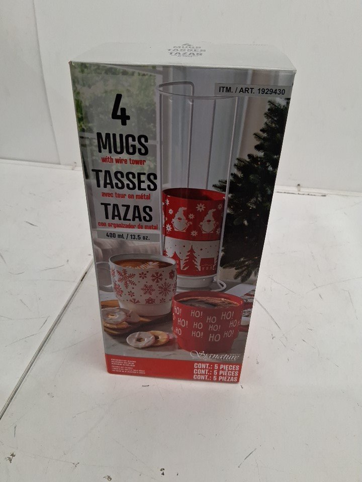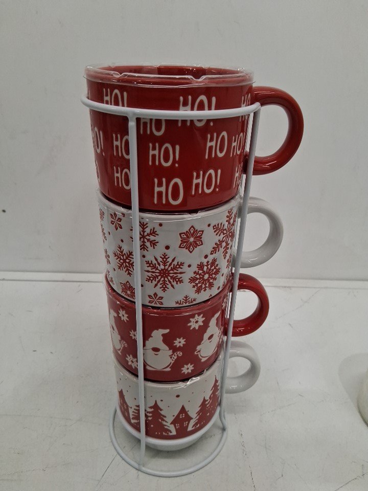 5PC Signature Housewares Christmas Tower Mugs WITH STAND - RED/ WHITE (MODEL: 1929430)