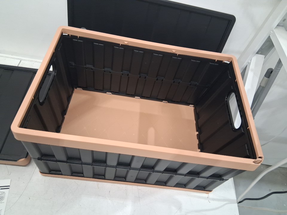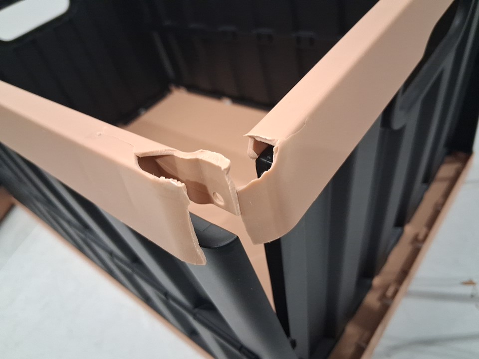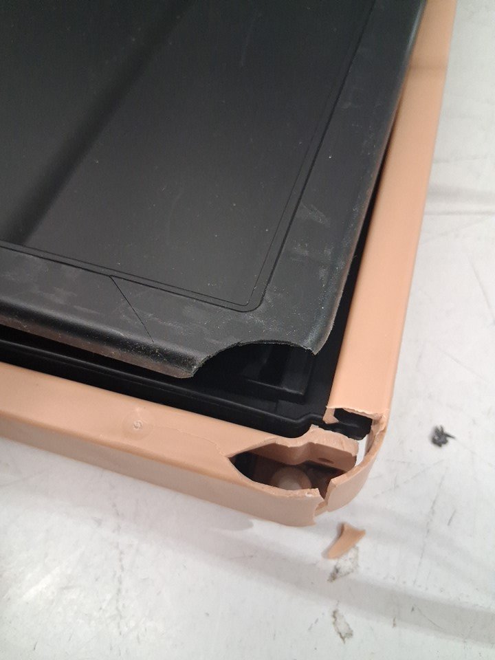 Chipped on corner of one bin and lid, bin can be assembled but is flimsy. See photos